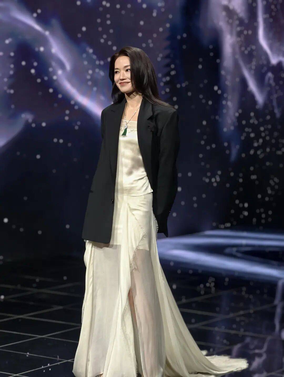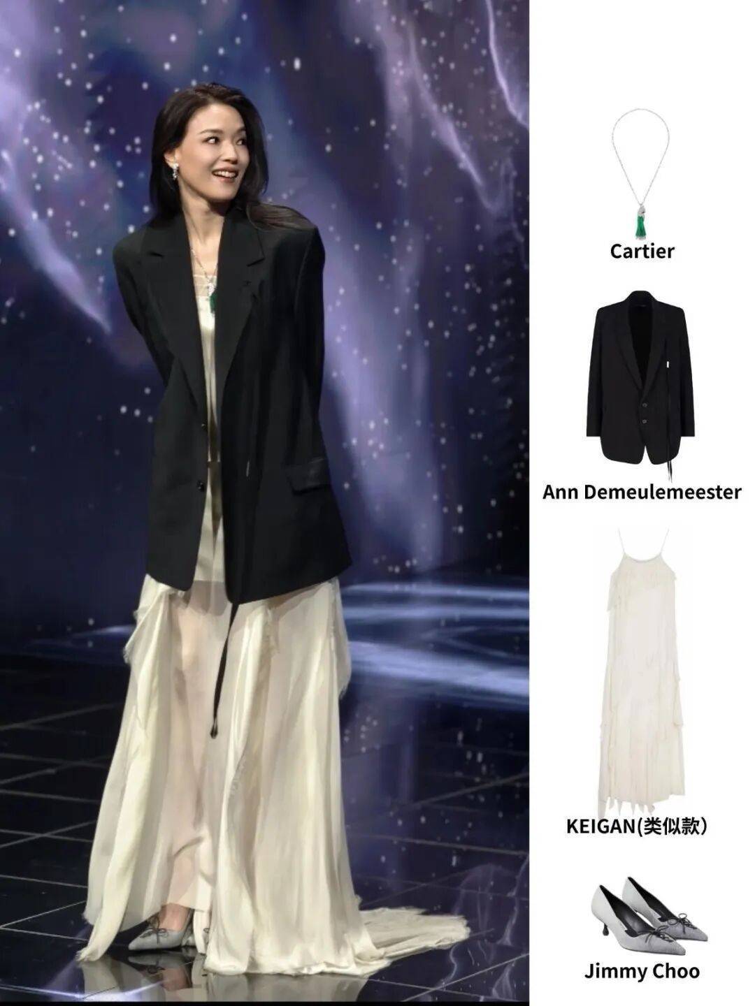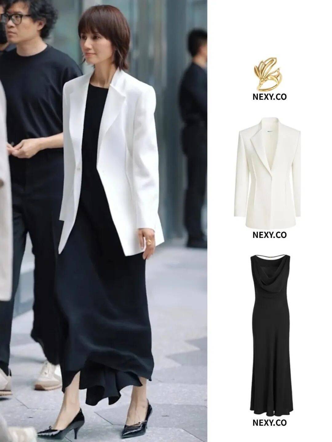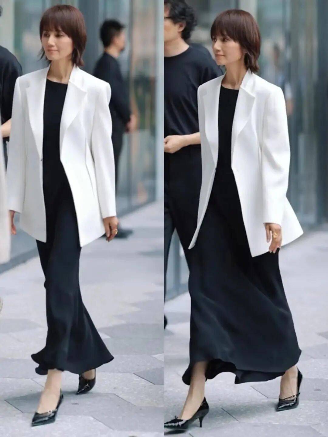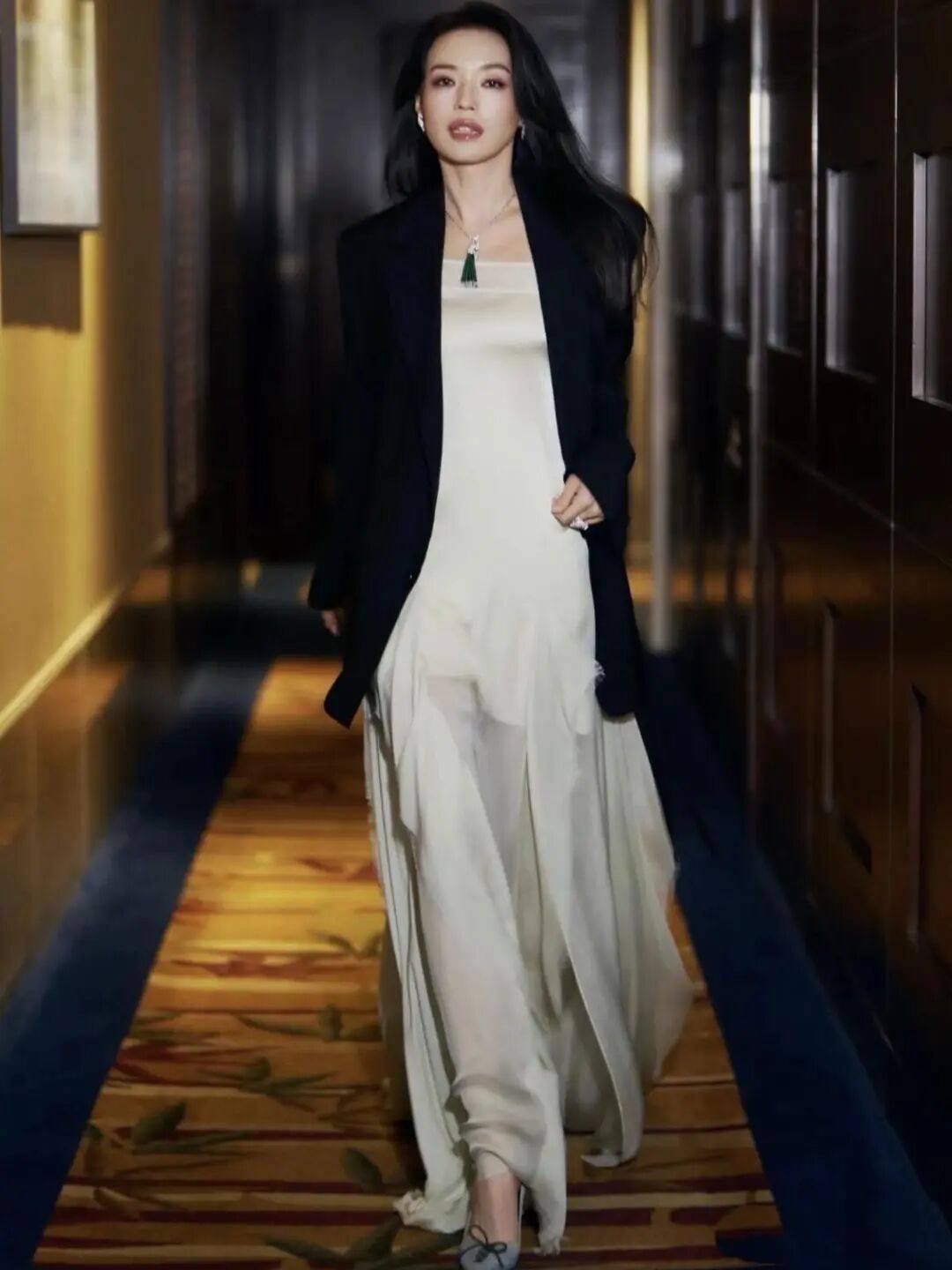 舒淇转型导演后钟情于这种穿搭。西装勾勒出硬朗的轮廓,搭配飘逸长裙,刚柔并济,完美平衡。她所展现的不仅仅是服装,更是一种“才华与柔美并存”的态度,尽显高级感。